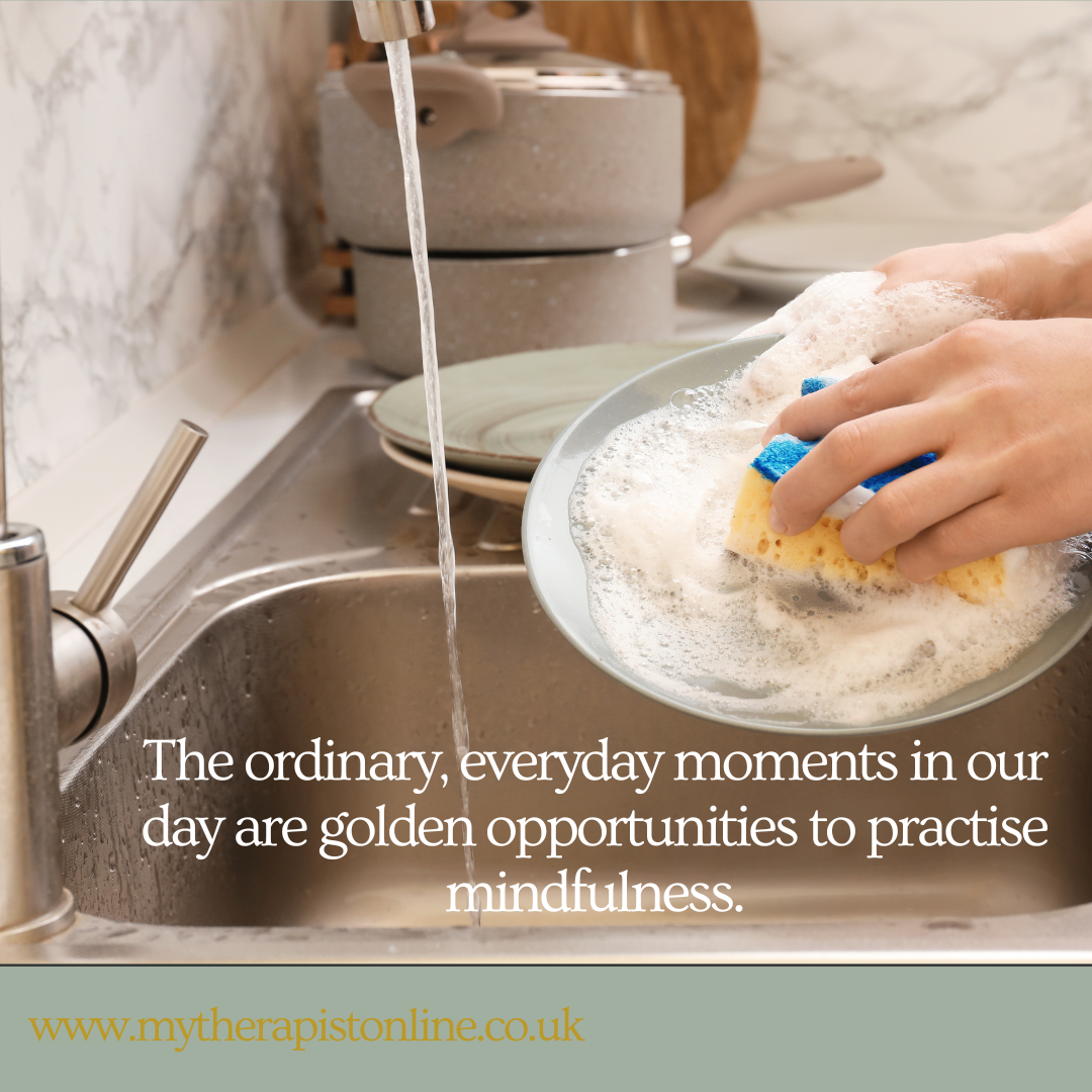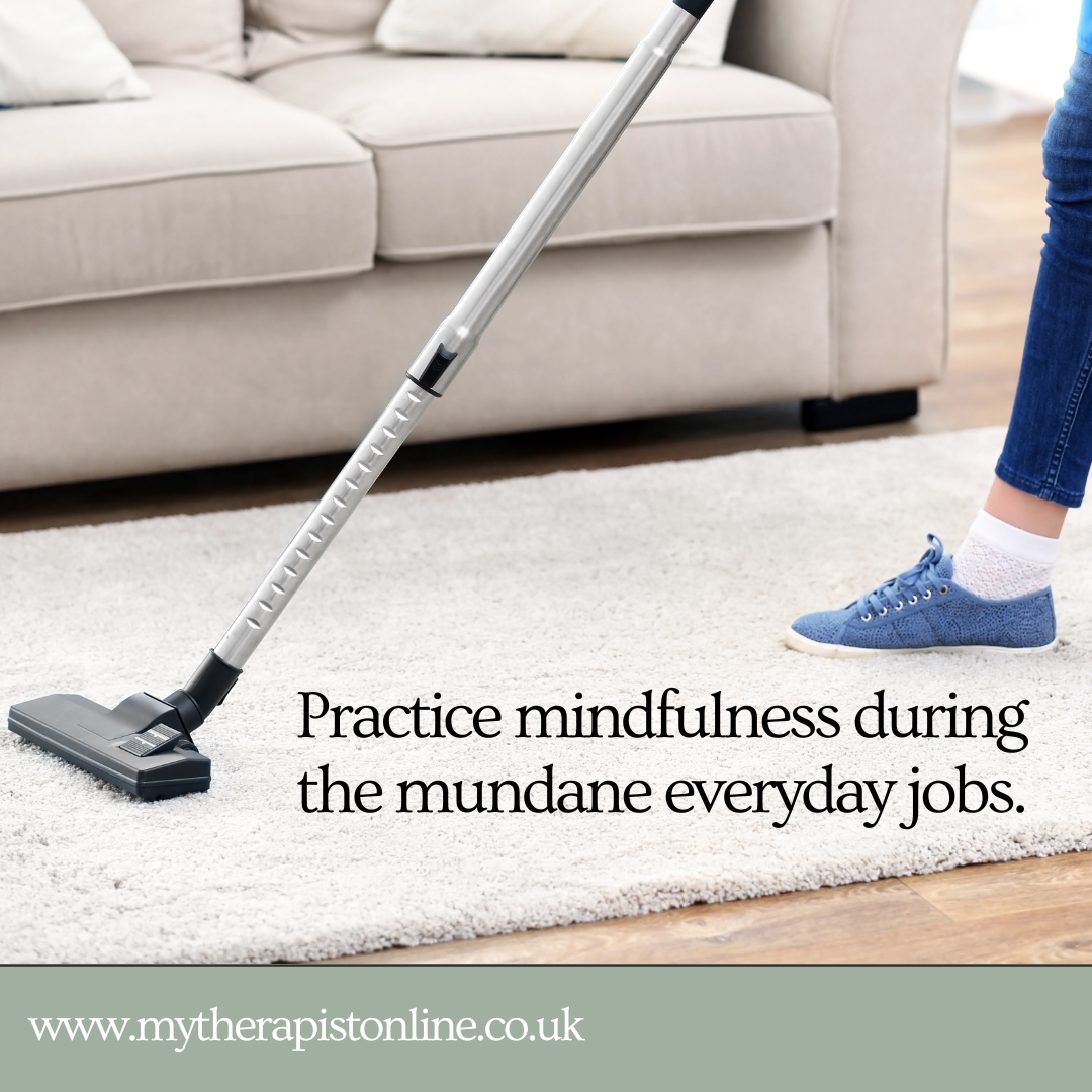 Task focused mindfulness allows us to turn ordinary routines into opportunities for grounding, clarity and calm. Next time you are hoovering, weeding the garden or sitting down to eat, see if you can turn it into a mindful act.